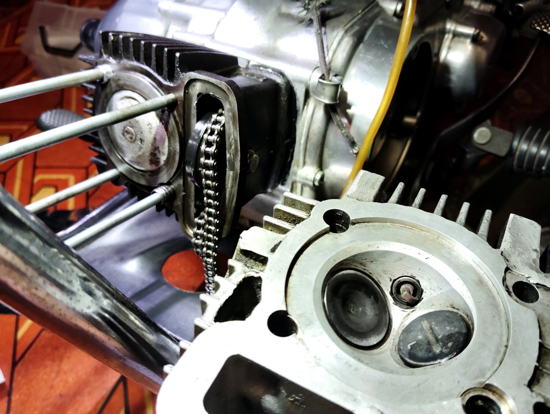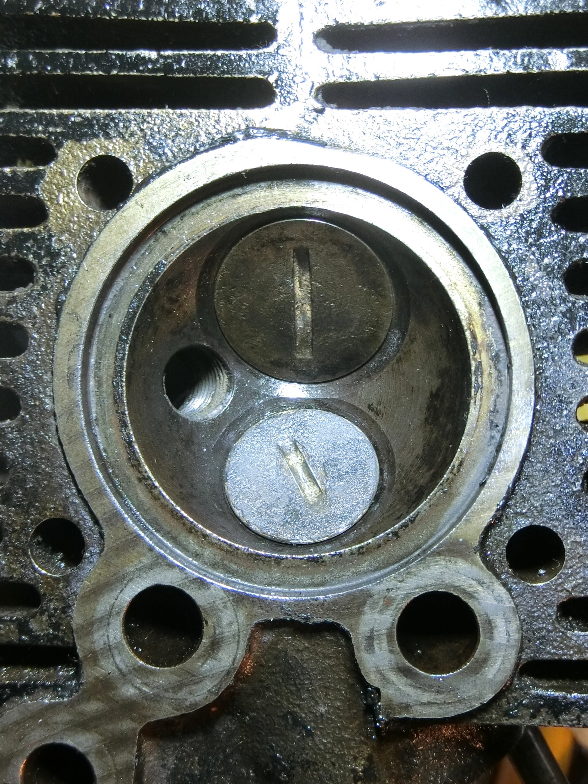ヘッドの下にある大きな穴がプッシュロッドの通り道。