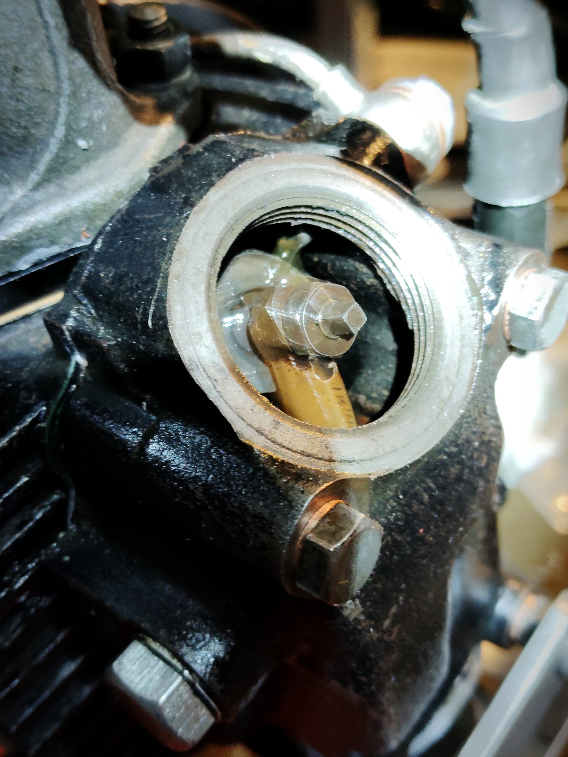 最初、出てこなくて、オイルラインを取り付けなおした