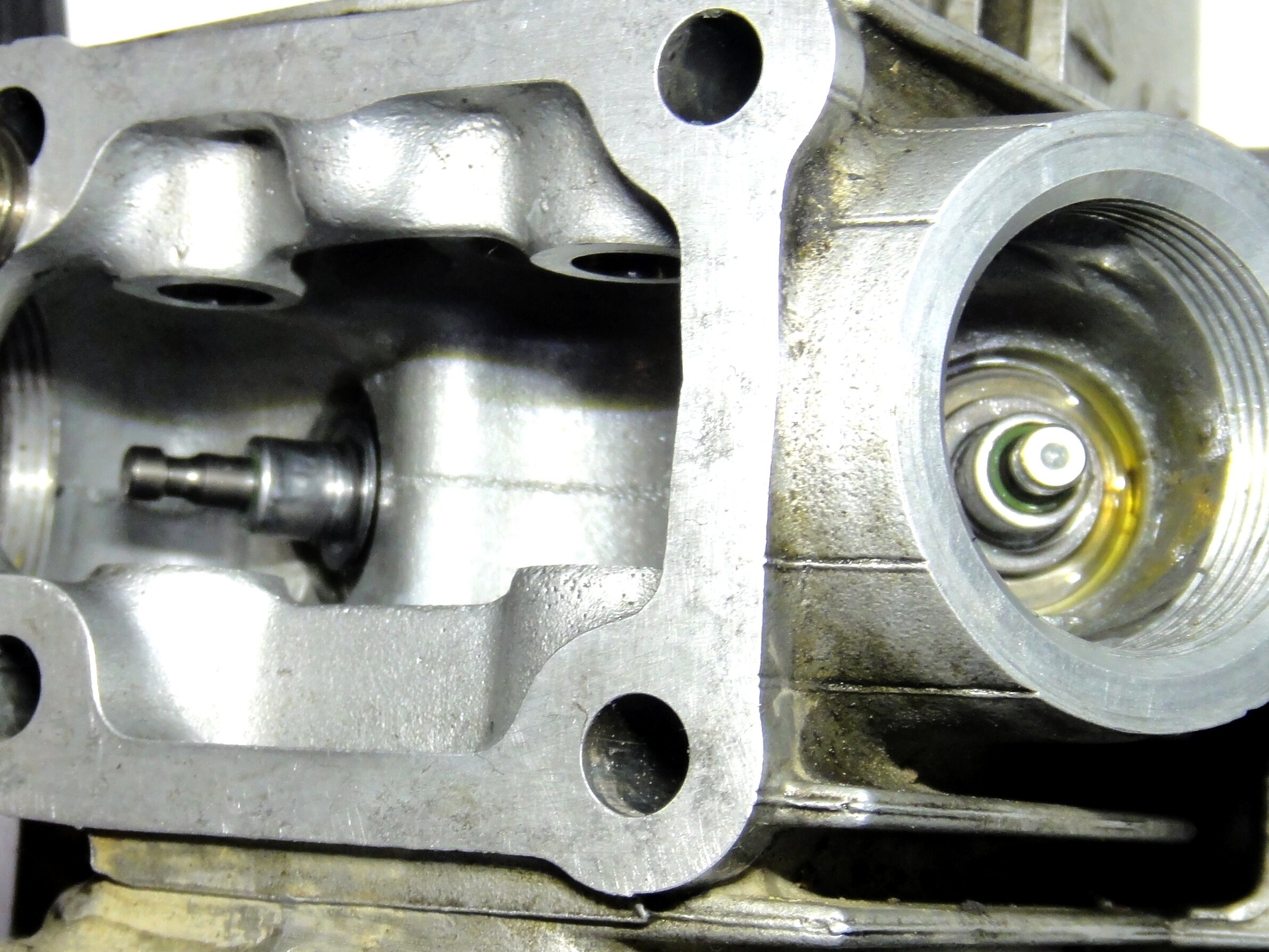 左下にある、半分隠れている穴がオイル戻りの穴。